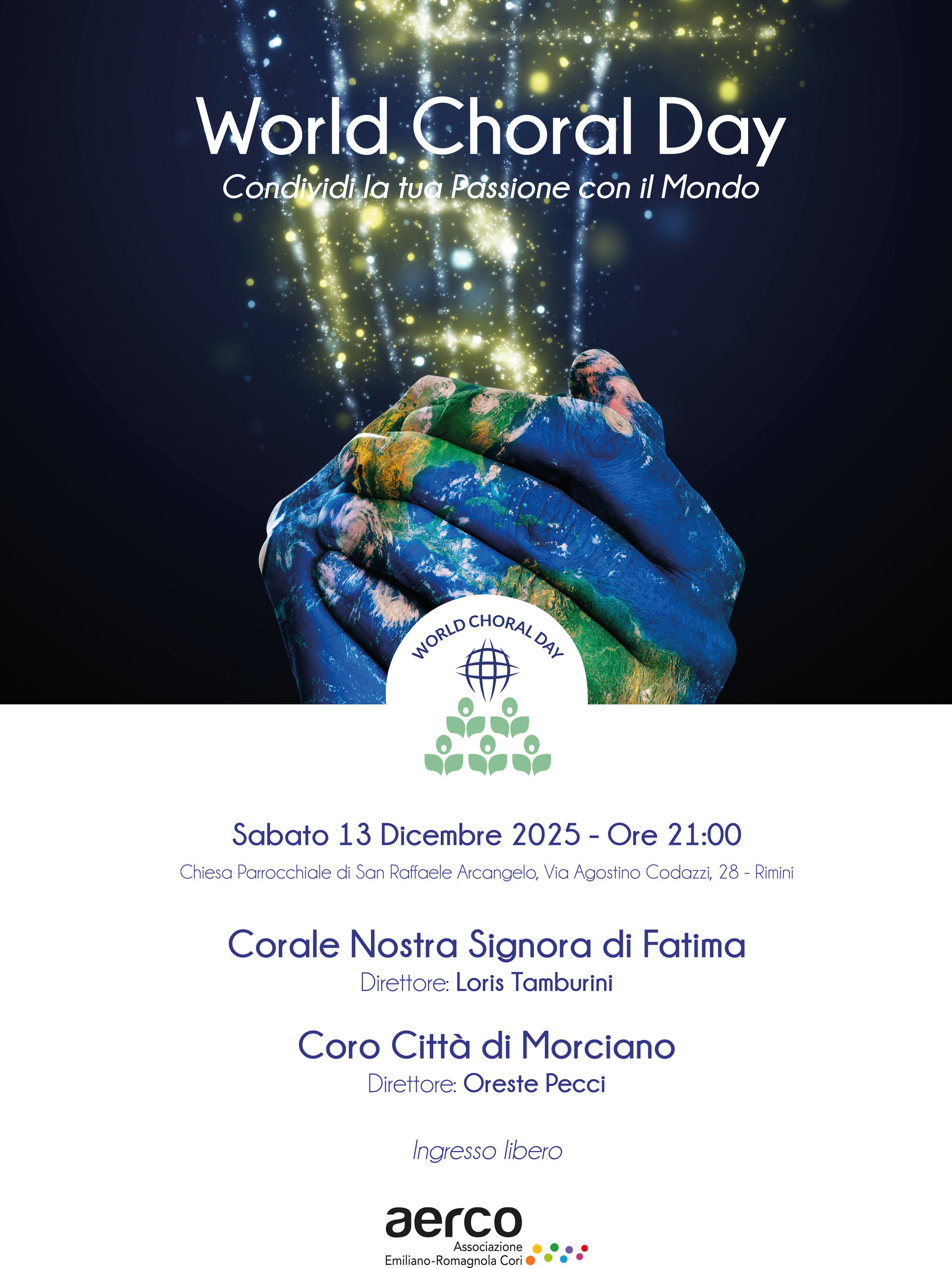 AERCO festeggia questa giornata con concerti ed eventi sul territorio regionale. Per ogni ulteriore informazione visitate il sito ufficiale del World Choral Day
