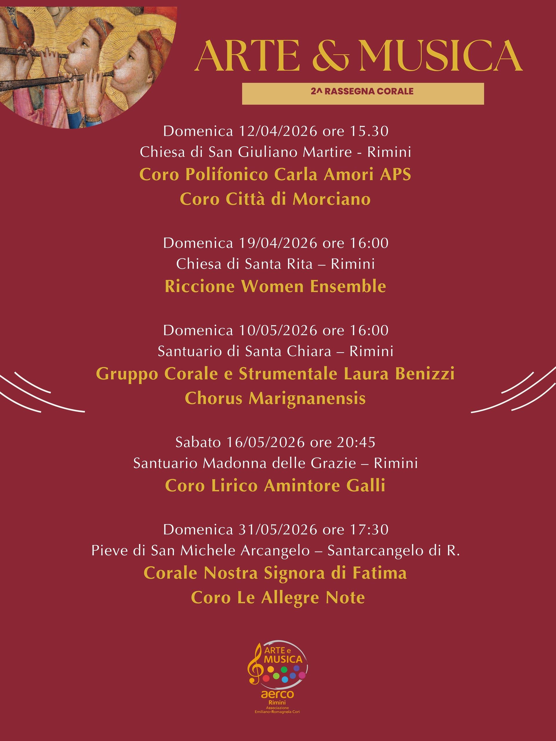 Promossa da AERCO – Associazione Emiliano-Romagnola Cori, delegazione di Rimini, la rassegna riunisce cori provenienti dal territorio, offrendo al pubblico un percorso emozionale fatto di suoni, armonie e atmosfere uniche. Ogni concerto è pensato come un’esperienza immersiva, in cui la musica corale dialoga con gli spazi, l’arte e la sensibilità degli interpreti.