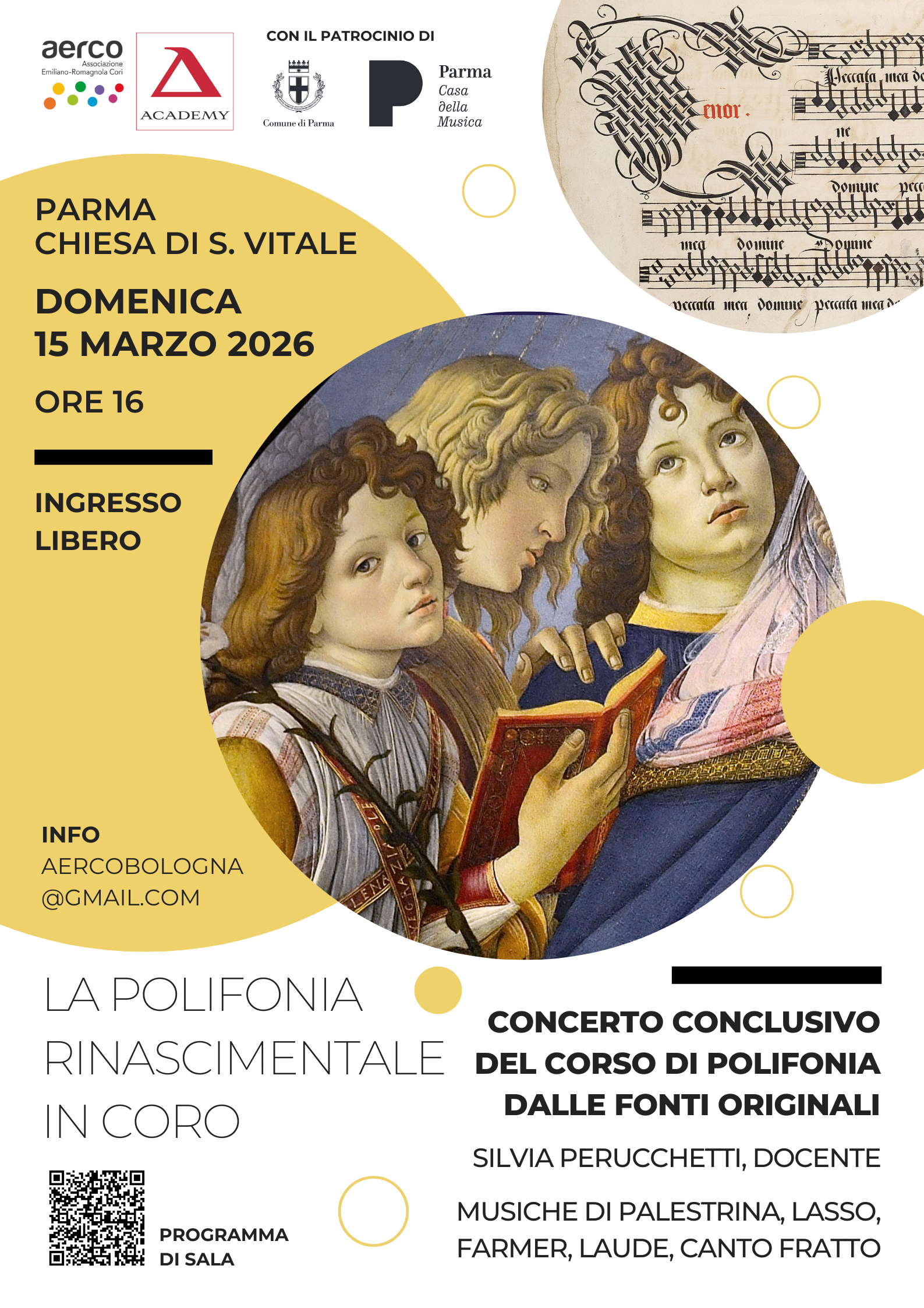 Avrà luogo il concerto conclusivo del Corso di Polifonia dell'Accademia Corale AERCO.