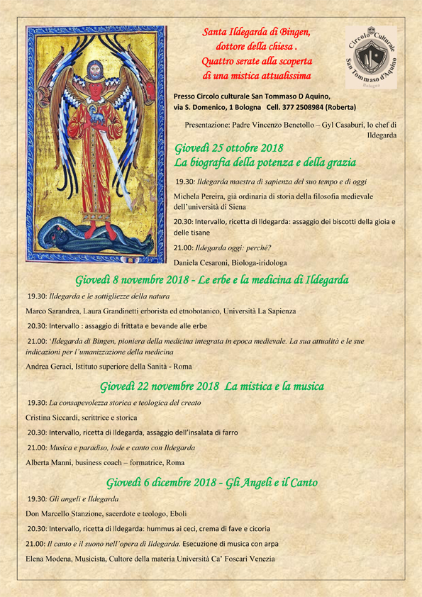 ore 19.30: MICHELA PEREIRA, UNIVERSITÀ DI SIENA Ildegarda maestra di sapienza del suo tempo e di oggi;